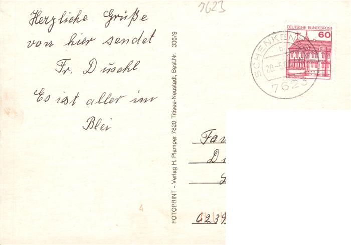 73930408 alte Postkarte Schenkenzell Teilansichten Luftkurort im Schwarzwald Burgruine postalisch gelaufen Erhaltung siehe scans [FriedD77] KatCode: 11110008325050