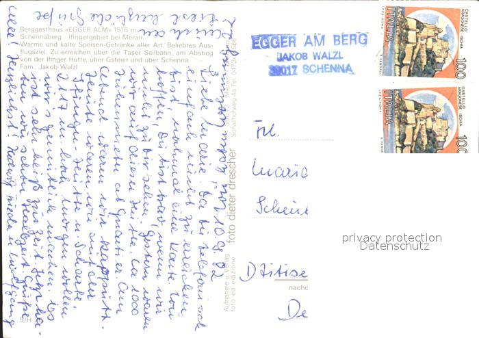 old postcard Schenna Meran Berggasthaus Egger Alm postalisch gelaufen Erhaltung siehe scans