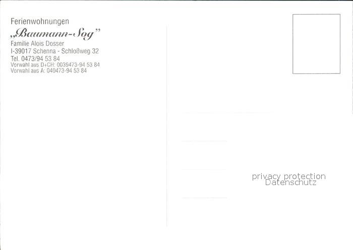 Schenna Meran Ferienwohnungen Baumann Sog postalisch nicht gelaufen Erhaltung siehe scans [WerneD78 kt117box]