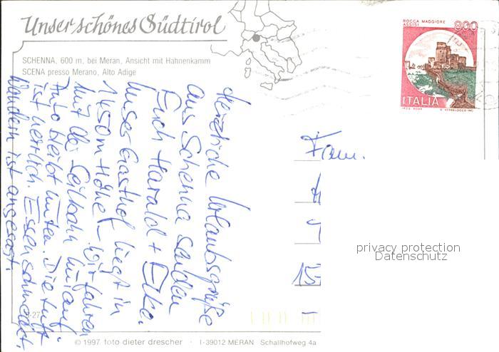 old postcard Schenna Meran Hahnenkamm postalisch gelaufen Erhaltung siehe scans