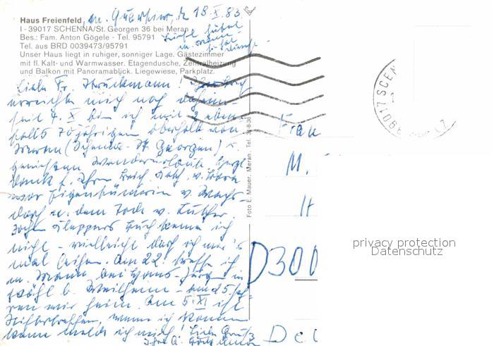 old postcard Schenna Meran Haus Freienfeld postalisch gelaufen Erhaltung siehe scans [LiesaD40]