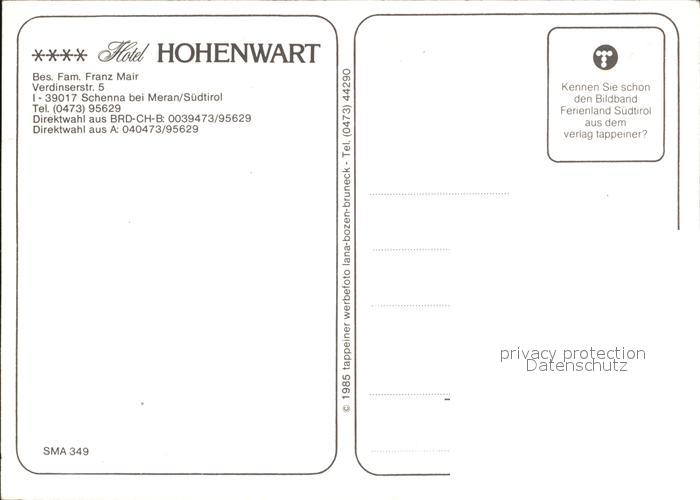 Schenna Meran Hotel Hohenwart postalisch nicht gelaufen Erhaltung siehe scans