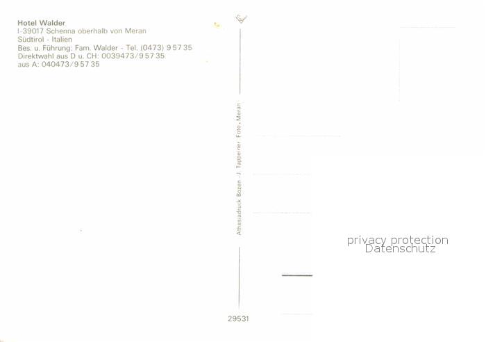 Schenna Meran Hotel Walder Alpenpanorama postalisch nicht gelaufen Erhaltung siehe scans [FriedD77]