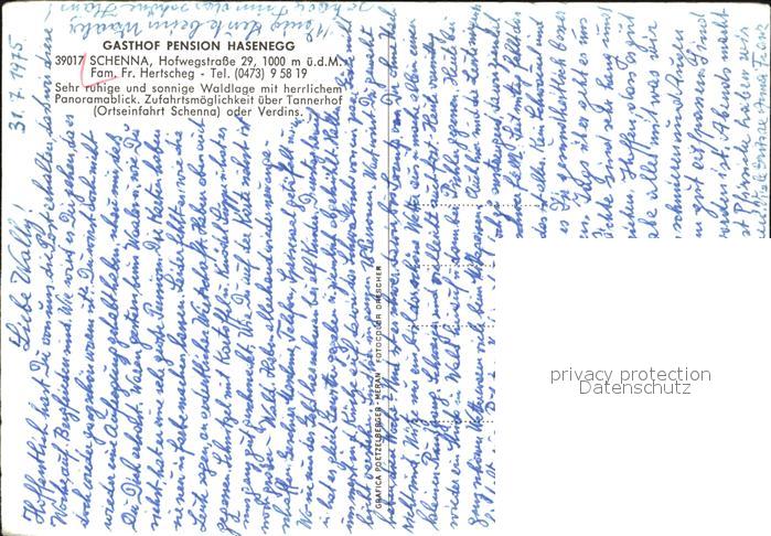 Schenna Meran Pension Hasenegg postalisch nicht gelaufen Erhaltung siehe scans