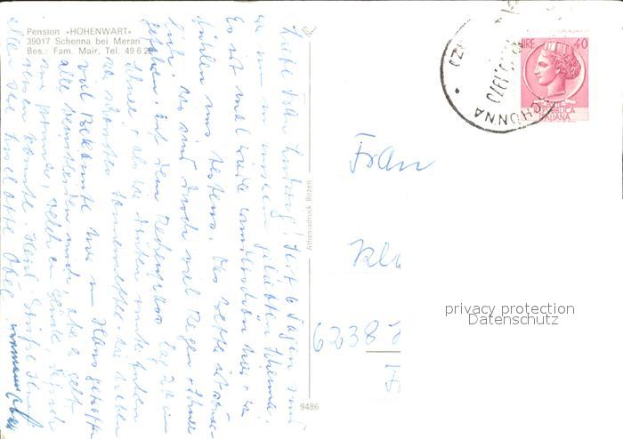 old postcard Schenna Meran Pension Hohenwart postalisch gelaufen Erhaltung siehe scans