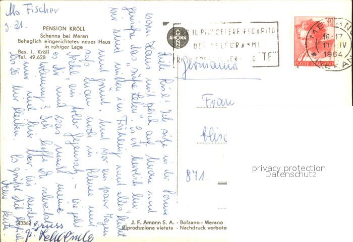 old postcard Schenna Meran Pension Kroell postalisch gelaufen