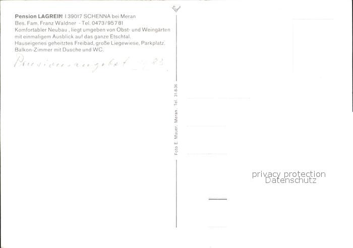 Schenna Meran Pension Lagrein postalisch nicht gelaufen Erhaltung siehe scans