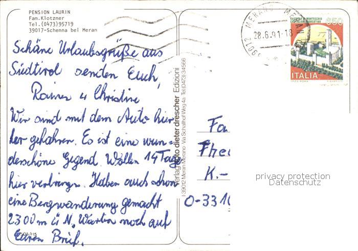 old postcard Schenna Meran Pension Laurin postalisch gelaufen Erhaltung siehe scans