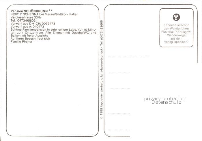 Schenna Meran Pension Schoenbrunn postalisch nicht gelaufen Erhaltung siehe scans