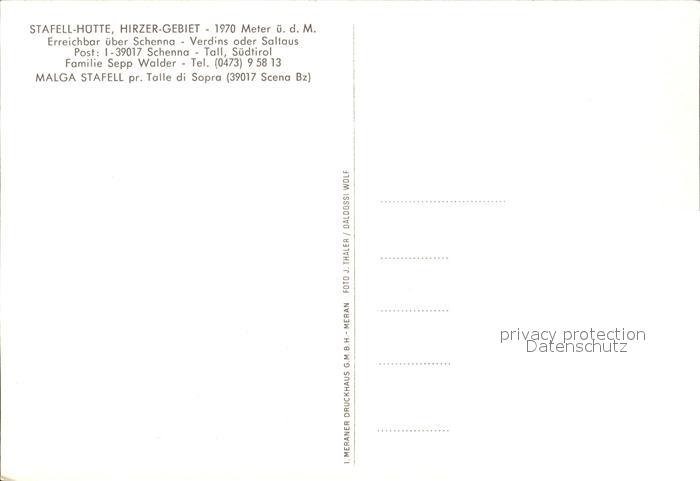 Schenna Meran Stafell-Huette Hirzer-Gebiet postalisch nicht gelaufen Erhaltung siehe scans