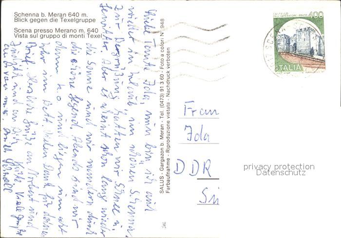 old postcard Schenna Meran Texelgruppe postalisch gelaufen Erhaltung siehe scans