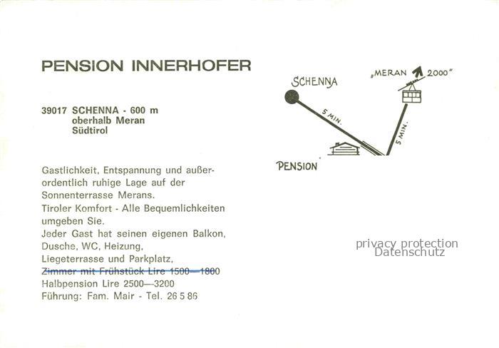 74110214 Schenna Meran Trentino IT Pension Innerhofer Terrasse postalisch nicht gelaufen Werbekarte (keine Postkarte) Erhaltung siehe scans [WerneD78] KatCode: 11240
