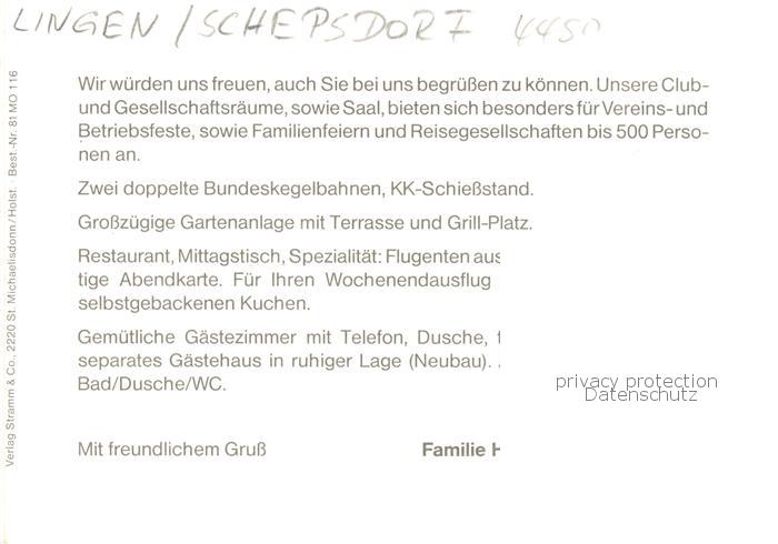 73847792 Schepsdorf Hotel Restaurant Hubertushof postalisch nicht gelaufen Werbekarte (keine Postkarte) Erhaltung siehe scans [FriedD77] KatCode: 11110003454032