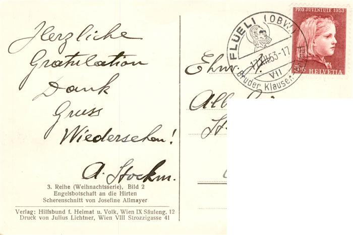 74036751 alte Postkarte Scherenschnitt-AK Schattenbildkarte Shadowbolt Josefine Allmayer Engelsbotschaft an die Hirten postalisch gelaufen Erhaltung siehe scans [IrynaD87] KatCode: 22080000001200