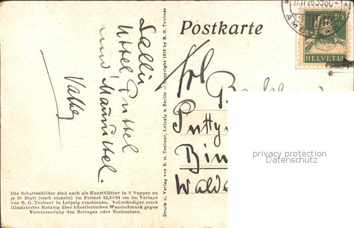 alte Postkarte Scherenschnitt Schattenbildkarte Diefenbach Goettliche Jugend 1. Blatt 18 Drachensteigen postalisch gelaufen Erhaltung siehe scans