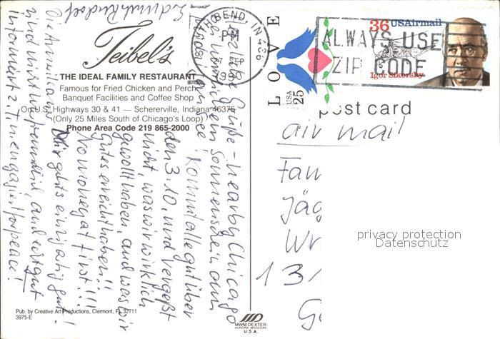 72244846 old postcard Schererville Restaurant Teibels postalisch gelaufen Erhaltung siehe scans KatCode: 14140160000000