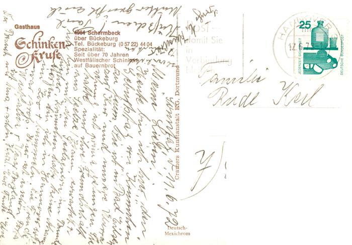 73875795 alte Postkarte Schermbeck Luhden Gasthaus Schinkenkrug postalisch gelaufen Erhaltung siehe scans [FriedD77] KatCode: 11110003257022