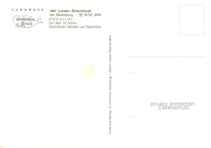 73723647 Schermbeck Luhden Landhaus Schinken Keule postalisch nicht gelaufen Erhaltung siehe scans [LiesaD40] KatCode: 11110003257022