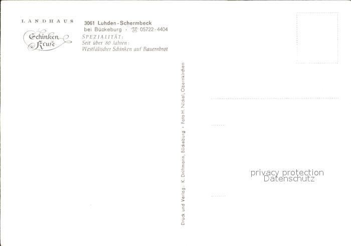 72549307 Schermbeck Luhden Landhaus Schinken Kruse bei Bueckeburg postalisch nicht gelaufen Erhaltung siehe scans [LiesaD40 kv021box] KatCode: 11110003257022