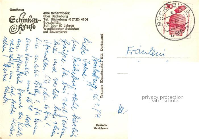 73569782 alte Postkarte Schermbeck Niederrhein Gasthaus Schinken-Kruste postalisch gelaufen Erhaltung siehe scans [WerneD78] KatCode: 11110005170036