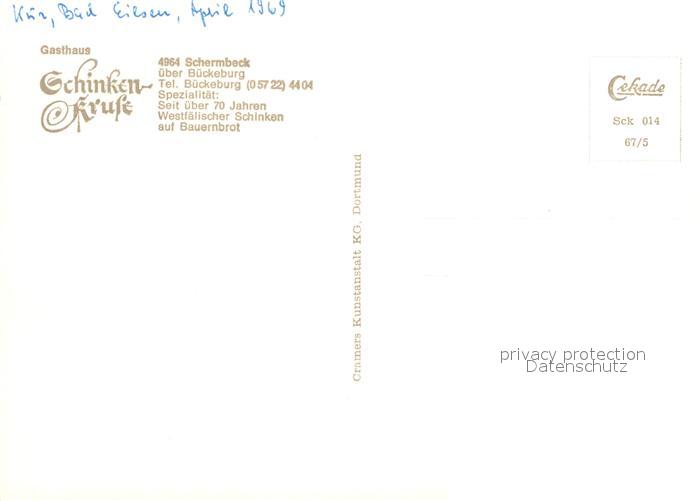73616335 Schermbeck Niederrhein Gasthaus Schinken Kruste postalisch nicht gelaufen Erhaltung siehe scans [WerneD78] KatCode: 11110005170036