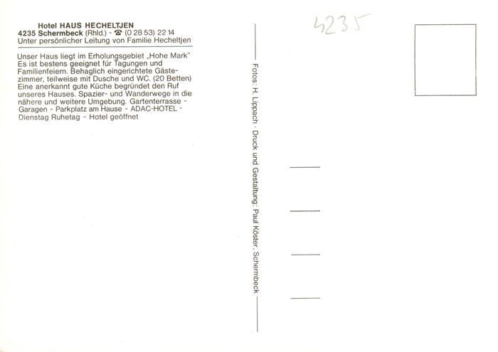 73943063 Schermbeck Niederrhein Hotel Haus Hecheltjen Restaurant Terrasse postalisch nicht gelaufen Erhaltung siehe scans [FriedD77] KatCode: 11110005170036