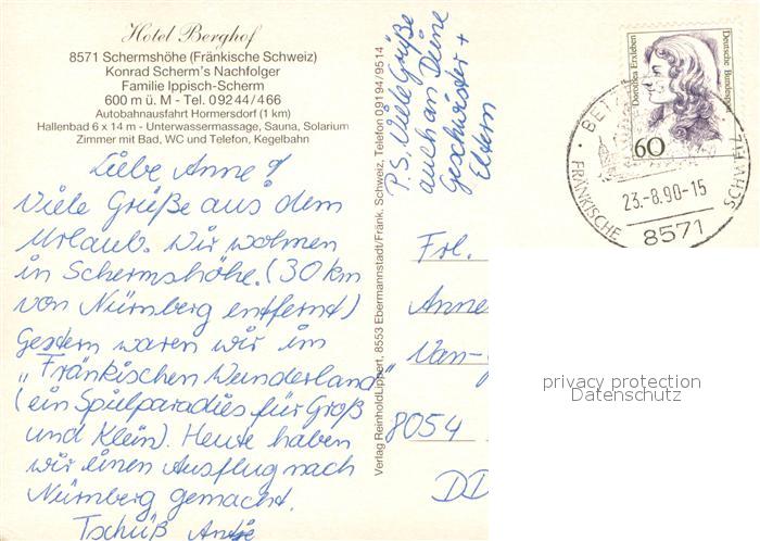 73654313 alte Postkarte Schermshoehe Hotel Berghof Gastraeume Hallenbad postalisch gelaufen Erhaltung siehe scans [WerneD78] KatCode: 11110009472177