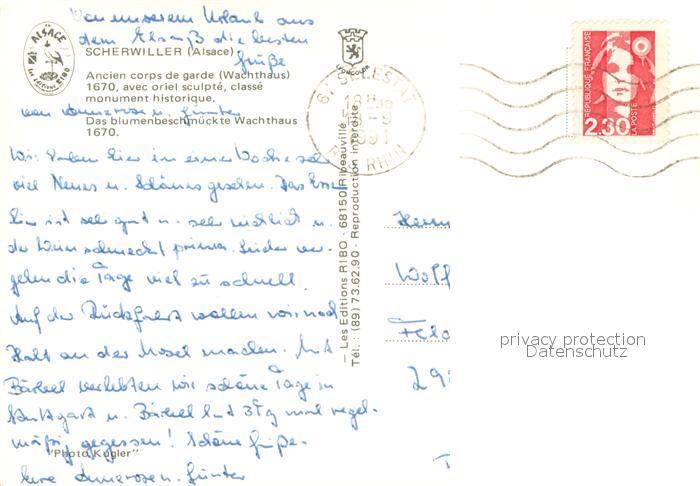 13718827 Scherwiller Acien corps de garde Wachthaus 17. Jhdt. postalisch gelaufen Erhaltung siehe scans [FriedD77] carte postale Frie Katcode 11170067567445