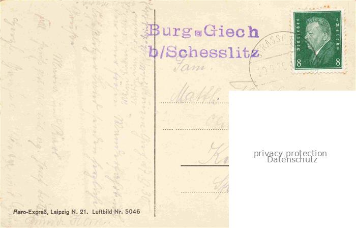 74131321 alte Postkarte Schesslitz Bamberg Bayern Burguine Giech postalisch gelaufen Fliegeraufnahme Erhaltung siehe scans [SanaeD93] KatCode: 11110009471185