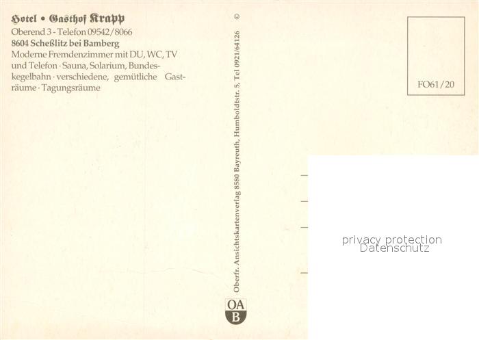 73651026 Schesslitz Hotel Gasthof Krapp Restaurant postalisch nicht gelaufen Erhaltung siehe scans [FriedD77] KatCode: 11110009471185