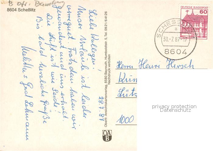 73670868 alte Postkarte Schesslitz Panorama Brunnen Kirche Rathaus Gasthof Schwimmbad postalisch gelaufen Erhaltung siehe scans [WerneD78] KatCode: 11110009471185