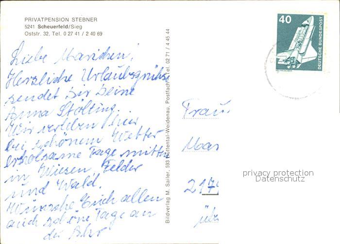 72034790 alte Postkarte Scheuerfeld Sieg Privatpension Stebner postalisch gelaufen KatCode: 11110007132098