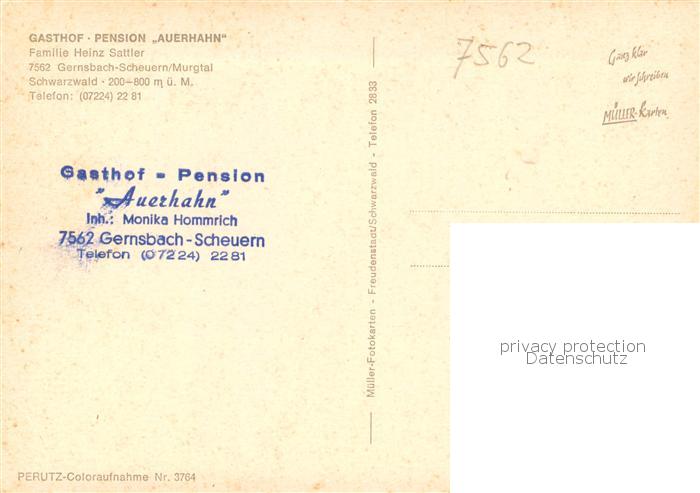 73757849 Scheuern Gernsbach Gasthof Pension Auerhahn Gaststube postalisch nicht gelaufen Erhaltung siehe scans [FriedD77] KatCode: 11110008216017