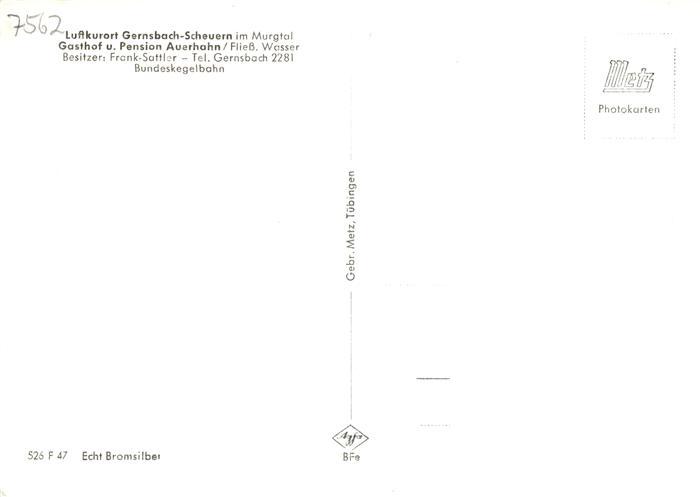 73893284 Scheuern Gernsbach Gasthof Pension zum Auerhahn Gastraeume Panorama postalisch nicht gelaufen Erhaltung siehe scans [WerneD78] KatCode: 11110008216017