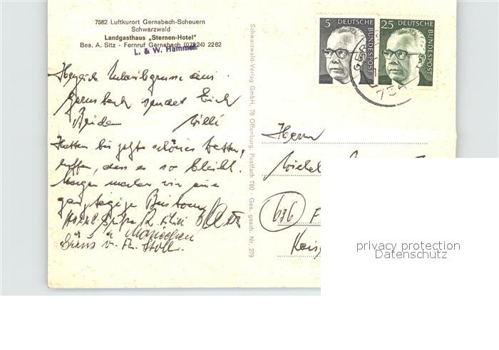 32573869 alte Postkarte Scheuern Gernsbach Landgasthaus Sternen Hotel postalisch gelaufen Erhaltung siehe scans [WerneD78] KatCode: 11110008216017