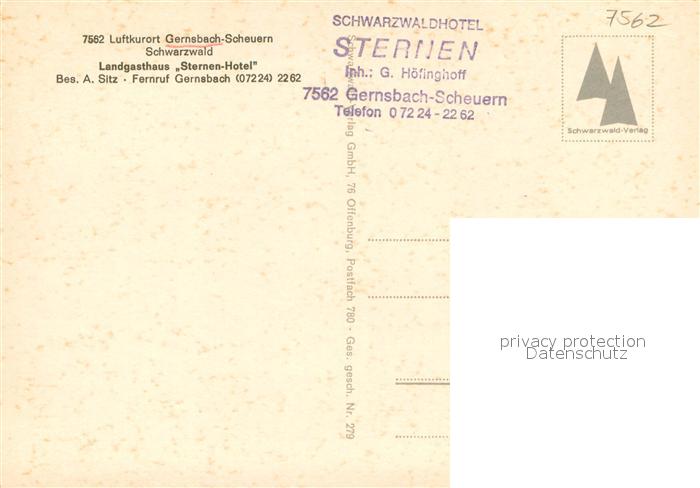 73657522 Scheuern Gernsbach Landgasthof Sternen Hotel Lutkurort postalisch nicht gelaufen Erhaltung siehe scans [FriedD77] KatCode: 11110008216017