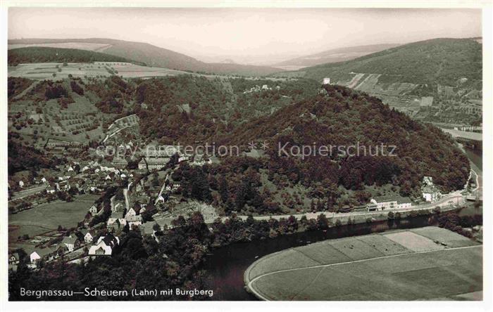 74096213 Scheuern Nassau Lahn Panorama mit Blick zum Burgberg postalisch nicht gelaufen Fliegeraufnahme Erhaltung siehe scans [FriedD77] KatCode: 11110007141091