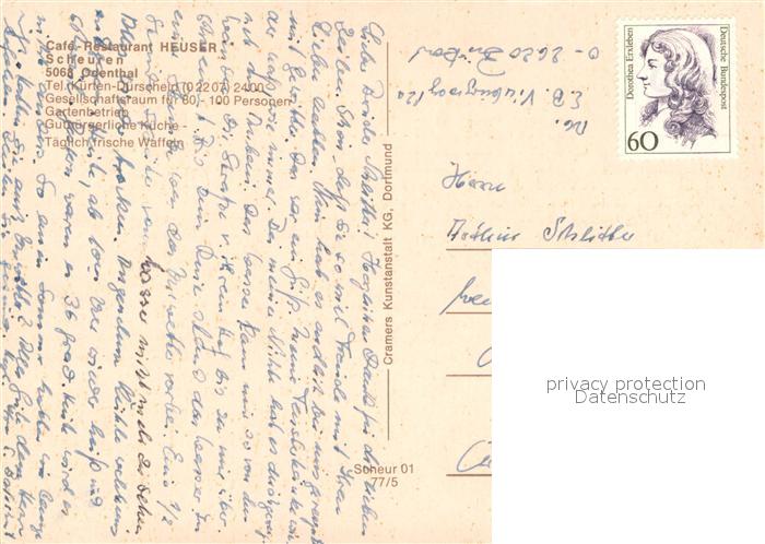 73716845 alte Postkarte Scheuren Odenthal Cafe Restaurant Heuser postalisch gelaufen Erhaltung siehe scans [FriedD77] KatCode: 11110005378020