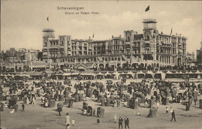 old postcard Scheveningen Strand an Palace Hotel postalisch gelaufen Erhaltung siehe scans