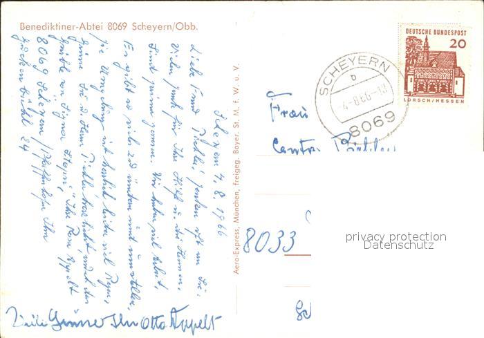 72016159 alte Postkarte Scheyern Fliegeraufnahme Benediktiner-Abtei postalisch gelaufen Erhaltung siehe scans KatCode: 11110009186151