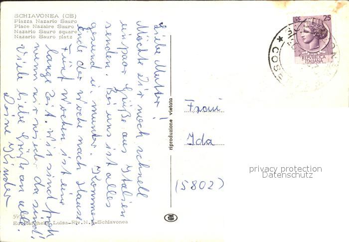 old postcard Schiavonea Piazza Nazario Sauro postalisch gelaufen Erhaltung siehe scans