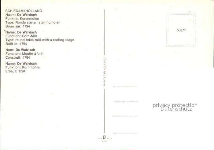 Schiedam Windmuehle am Kanal postalisch nicht gelaufen Erhaltung siehe scans