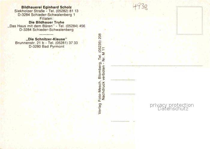 72665892 Schieder-Schwalenberg Bildhauerei Eginhard Scholz postalisch nicht gelaufen Erhaltung siehe scans [WerneD78] KatCode: 11110005766060
