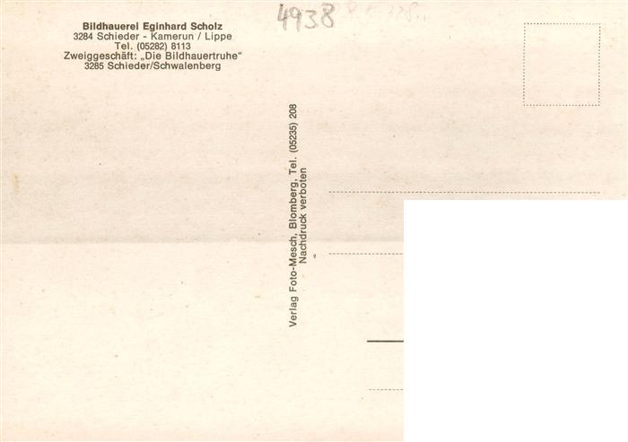 73890577 Schieder-Schwalenberg Bildhauerei Eginhard Scholz Die Bildhauertruhe postalisch nicht gelaufen Erhaltung siehe scans [FriedD77] KatCode: 11110005766060