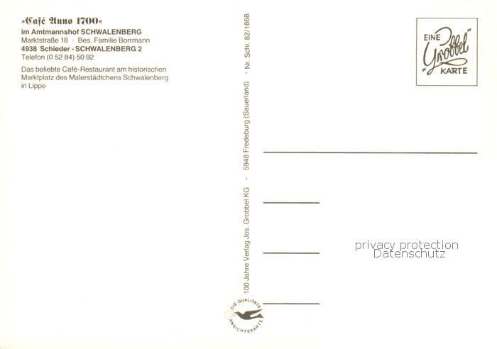 73866447 Schieder-Schwalenberg Cafe Anno 1700 postalisch nicht gelaufen Erhaltung siehe scans [WerneD78] KatCode: 11110005766060
