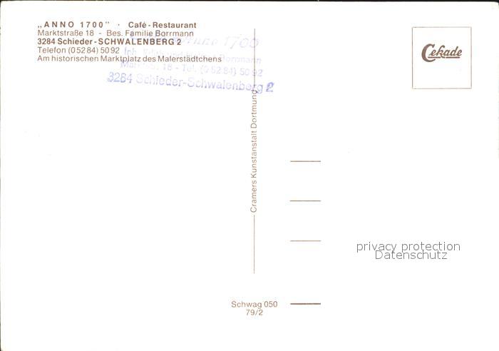 72548644 Schieder-Schwalenberg Cafe Restaurant Marktplatz postalisch nicht gelaufen Erhaltung siehe scans [AntonD74 kv020box] KatCode: 11110005766060