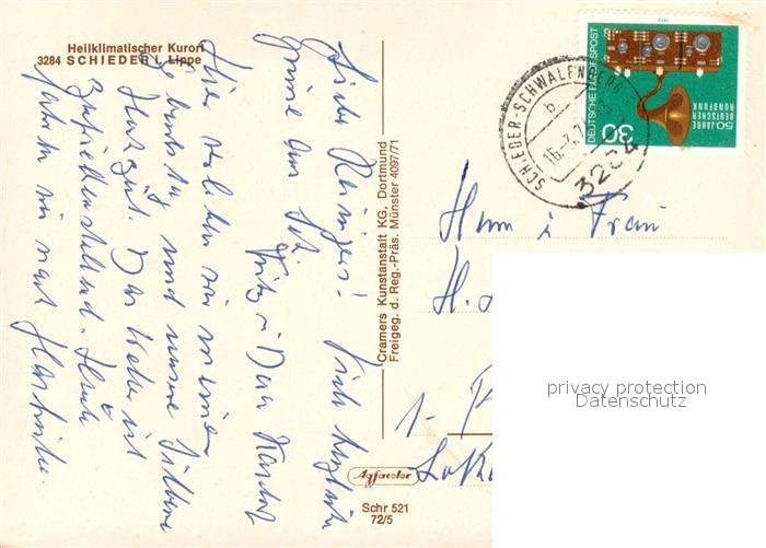 73617267 alte Postkarte Schieder-Schwalenberg Fliegeraufnahme postalisch gelaufen Erhaltung siehe scans [PaolaD17] KatCode: 11110005766060