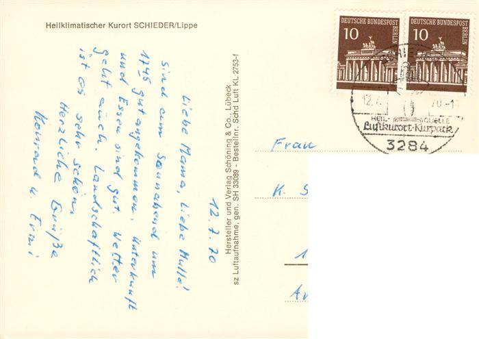 73924744 alte Postkarte Schieder-Schwalenberg Fliegeraufnahme postalisch gelaufen Erhaltung siehe scans [WerneD78] KatCode: 11110005766060