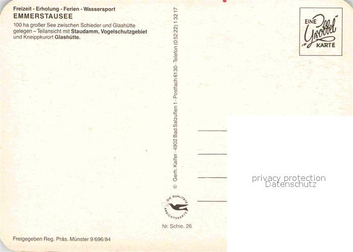 72896974 Schieder-Schwalenberg Fliegeraufnahme Emmerstausee Glashuette Panoramakarte postalisch nicht gelaufen Erhaltung siehe scans [KathaD81] KatCode: 11110005766060