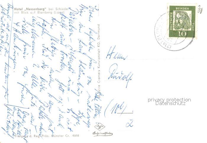 73105069 alte Postkarte Schieder-Schwalenberg Fliegeraufnahme Hotel Nessenberg postalisch gelaufen Erhaltung siehe scans [KathaD81] KatCode: 11110005766060